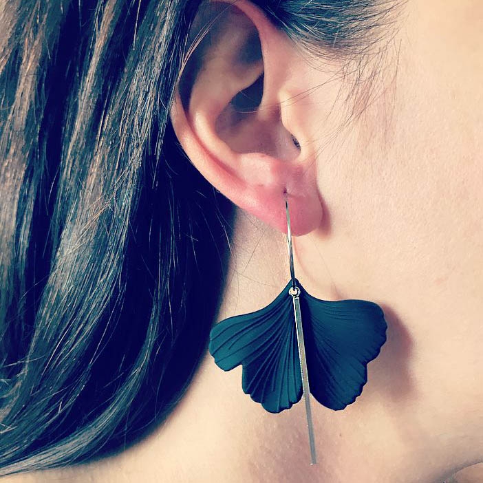 Cerceii Gingko fac parte din Colecția Underground, sunt lucrați manual din lut polimeric texturat cu aspect de piele și oțel inoxidabil.