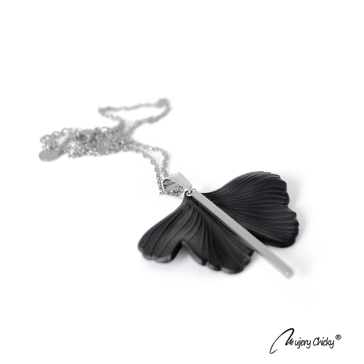 Colier geometric Ginkgo Section face parte din Colecția Underground, este lucrat manual din lut polimeric texturat, montură cu oțel inoxidabil.