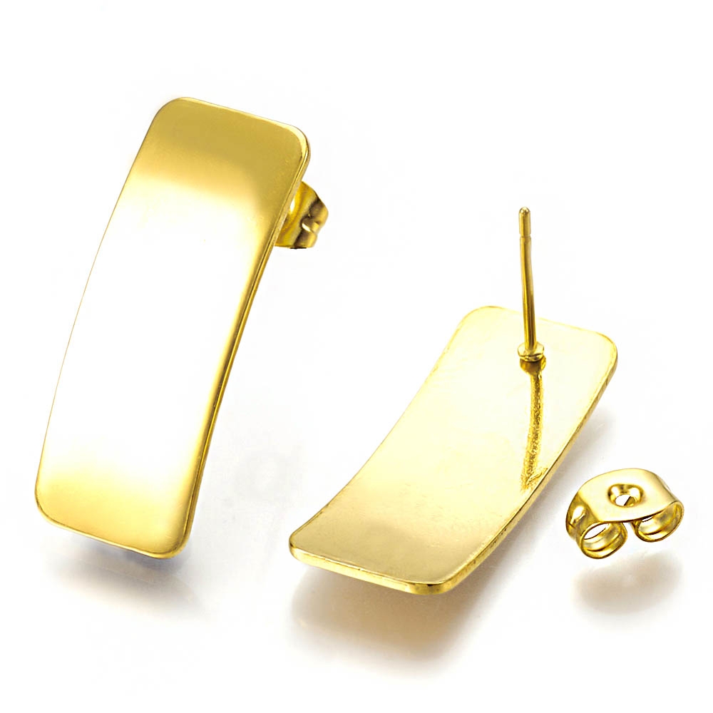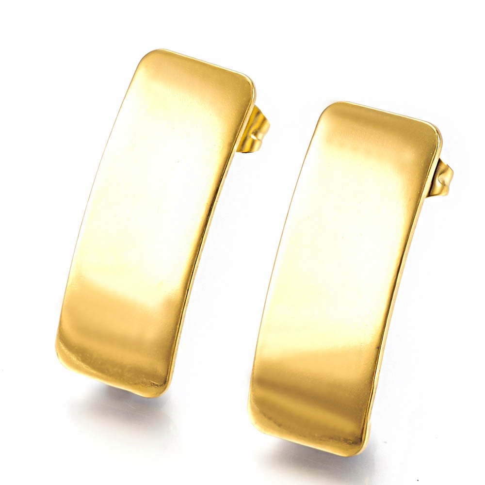 Cerceii asimetrici Curved Line Auriu fac parte din Colecția Minimal, sunt o pereche de cercei populari, simpli și de efect, confecționați din oțel inoxidabil electroplacat cu auriu.