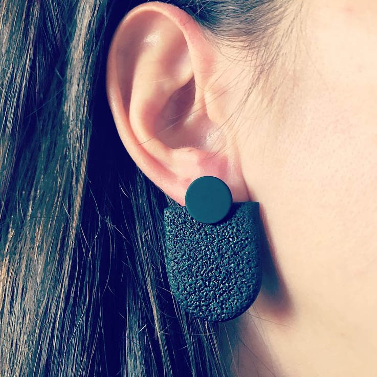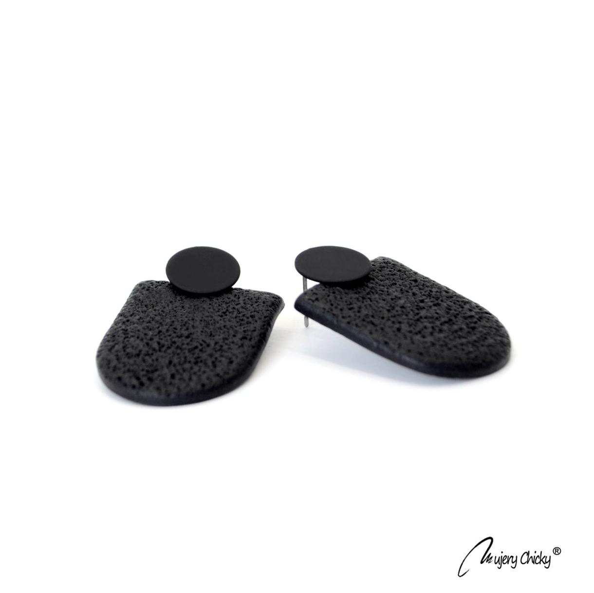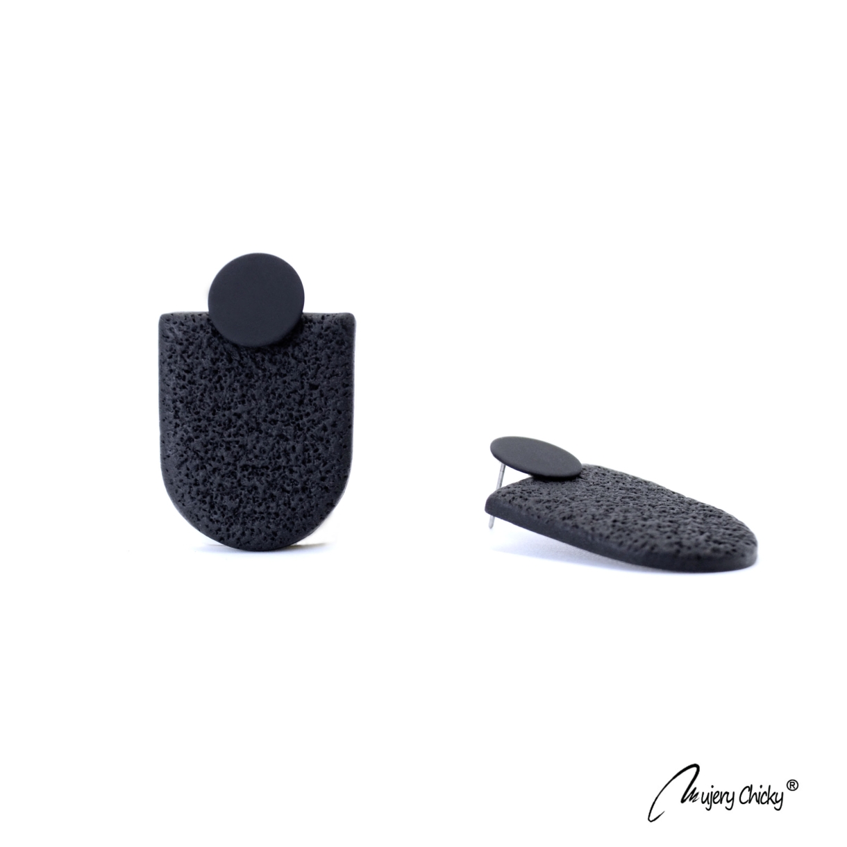 Cerceii geometrici asimetrici Allupa fac parte din Colecția Underground, un mic lux care se potrivește fiecarei ținute, confecționați din lut polimeric texturat cu montură din inox.