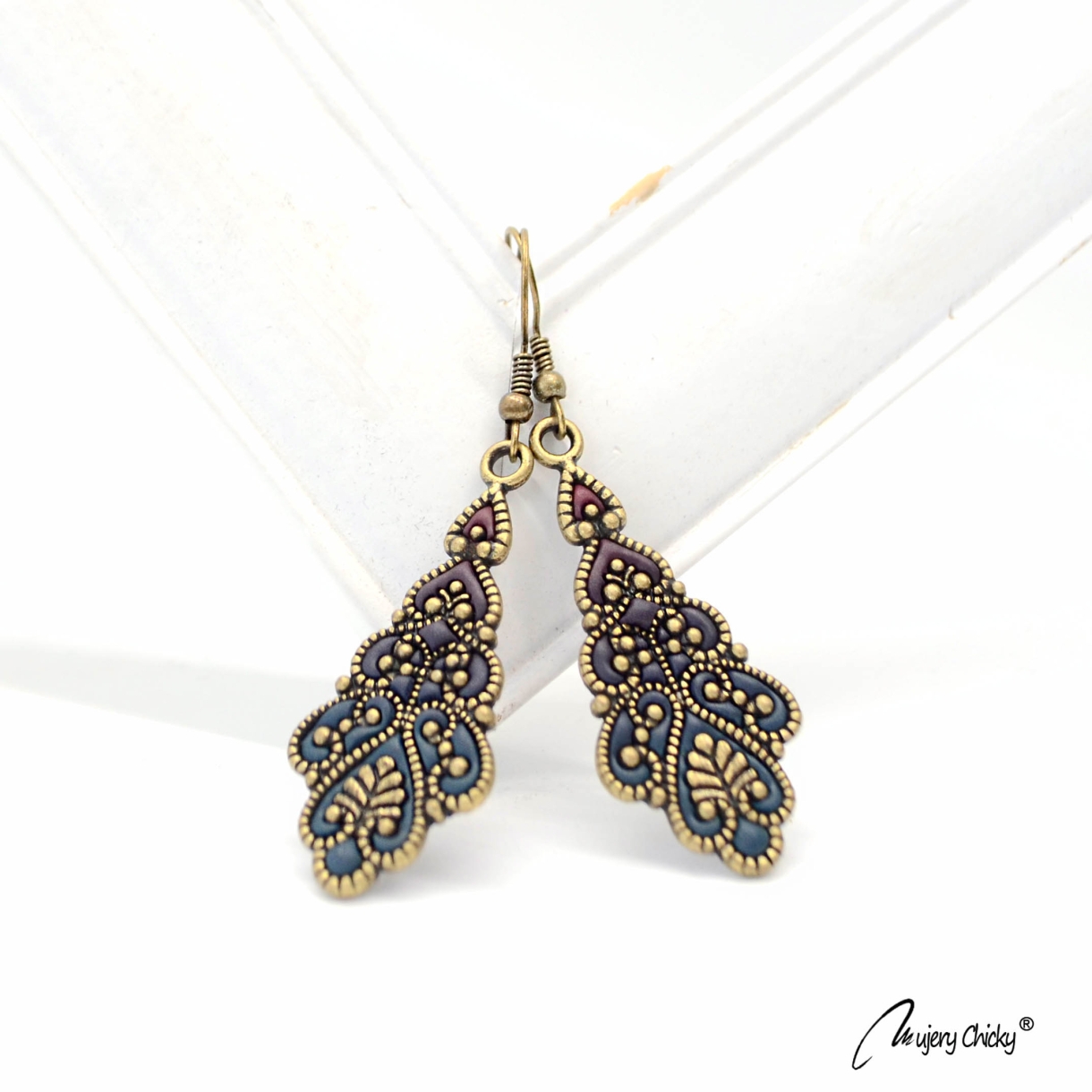 Cerceii în stil vintage Regal - Forest sunt lucrați manual prin tehnica applique, din lut polimeric, pe bază metalică cu finisaj bronz antichizat.