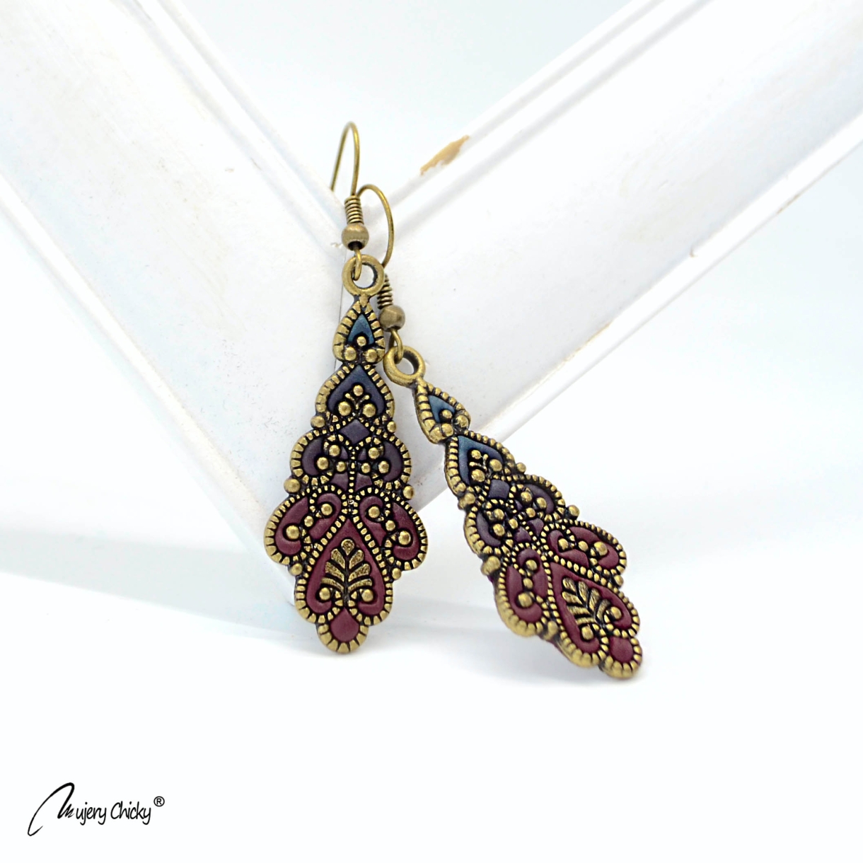 Cerceii în stil vintage Regal - Autumn sunt lucrați manual prin tehnica applique, din lut polimeric, pe bază metalică cu finisaj bronz antichizat.