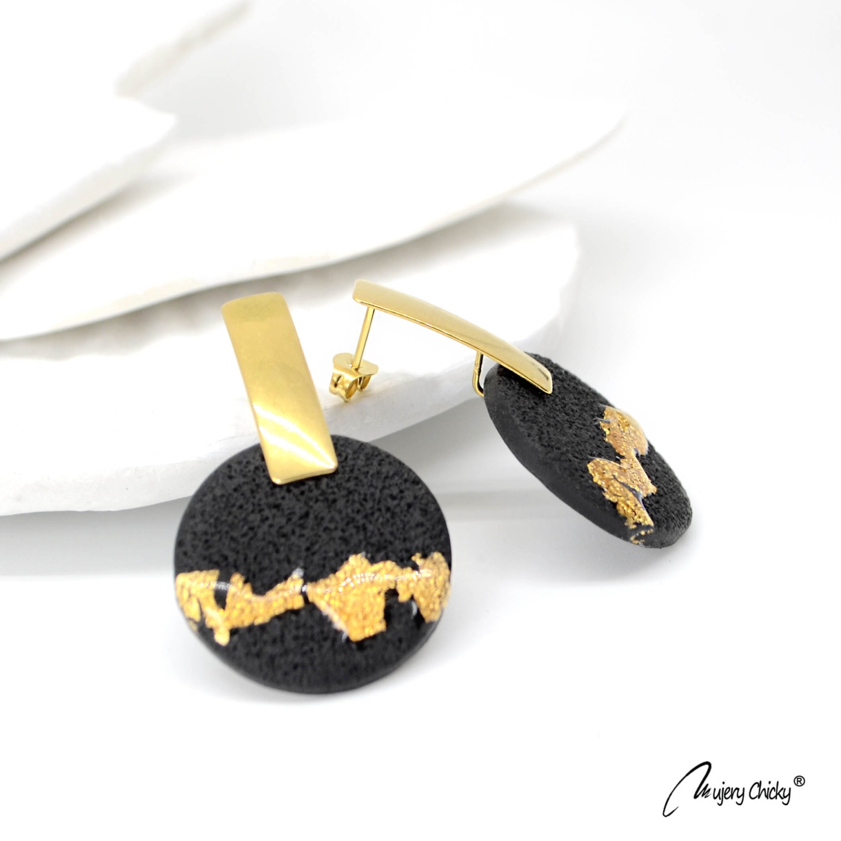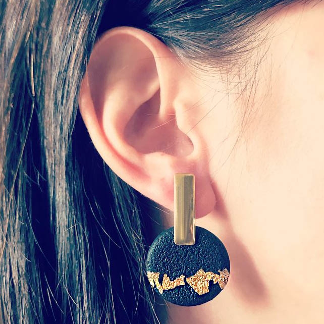 Cerceii Zumaia Auriu fac parte din Colecția Underground, sunt lucrați manual din lut polimeric texturat cu aspect de piele, placat cu foiță de aur sigilată cu rășină UV, montură cu oțel inoxidabil electroplacat cu auriu.
