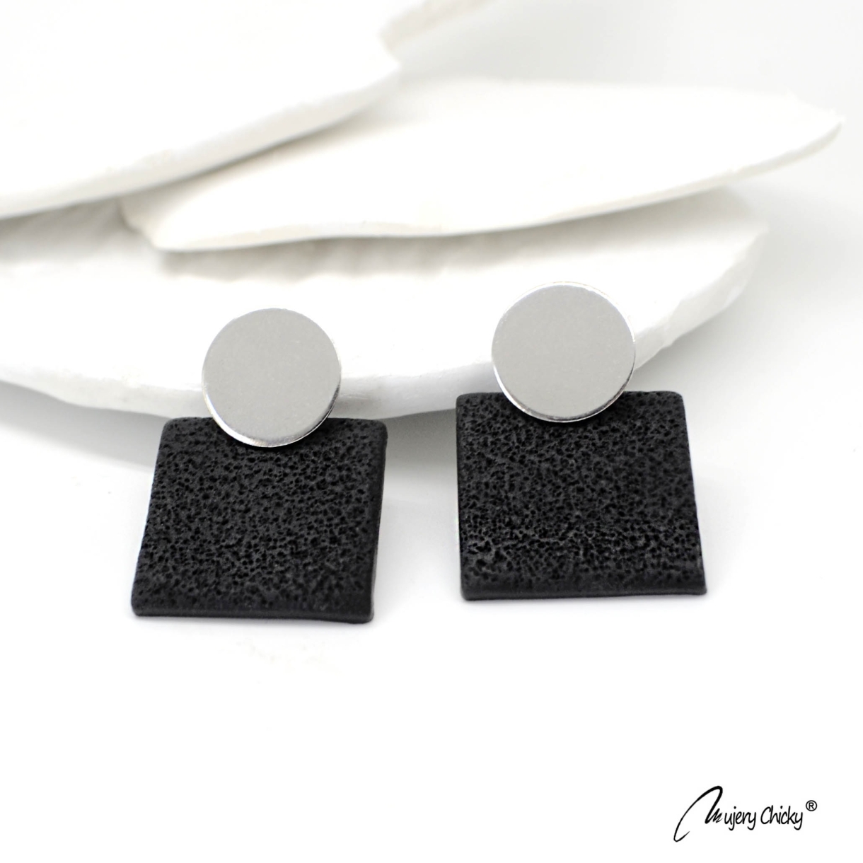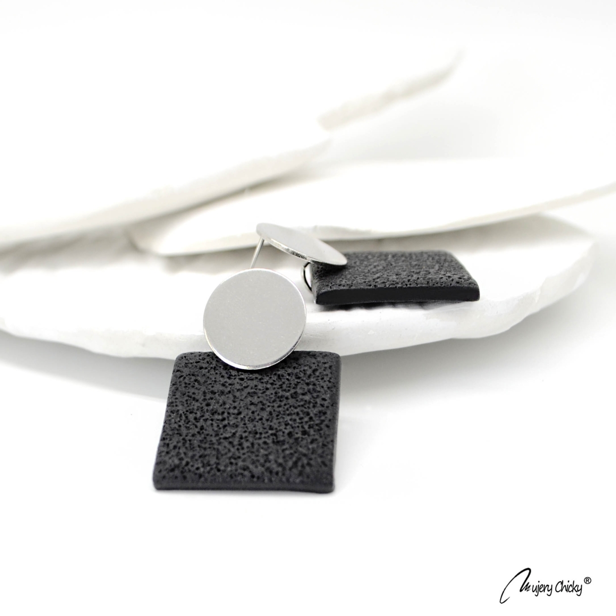 Cerceii geometrici asimetrici Asco fac parte din Colecția Underground, sunt lucrați manual din lut polimeric texturat cu aspect de piele și oțel inoxidabil.