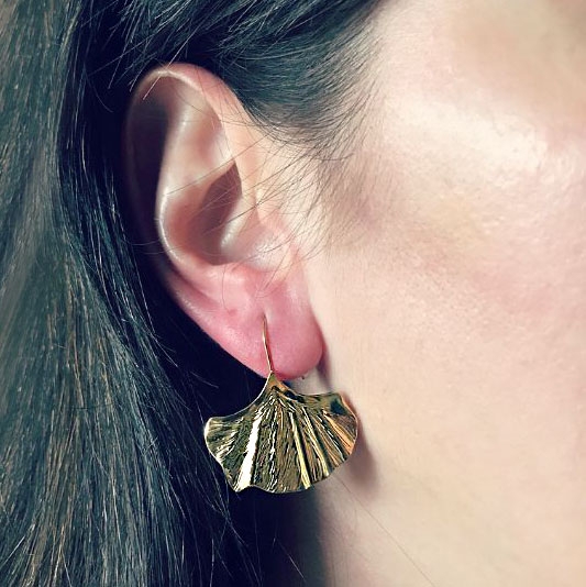Cerceii asimetrici Ginkgo Auriu fac parte din Colecția Minimal, sunt o pereche de cercei populari, simpli și de efect, confecționați din oțel inoxidabil electroplacat cu auriu.