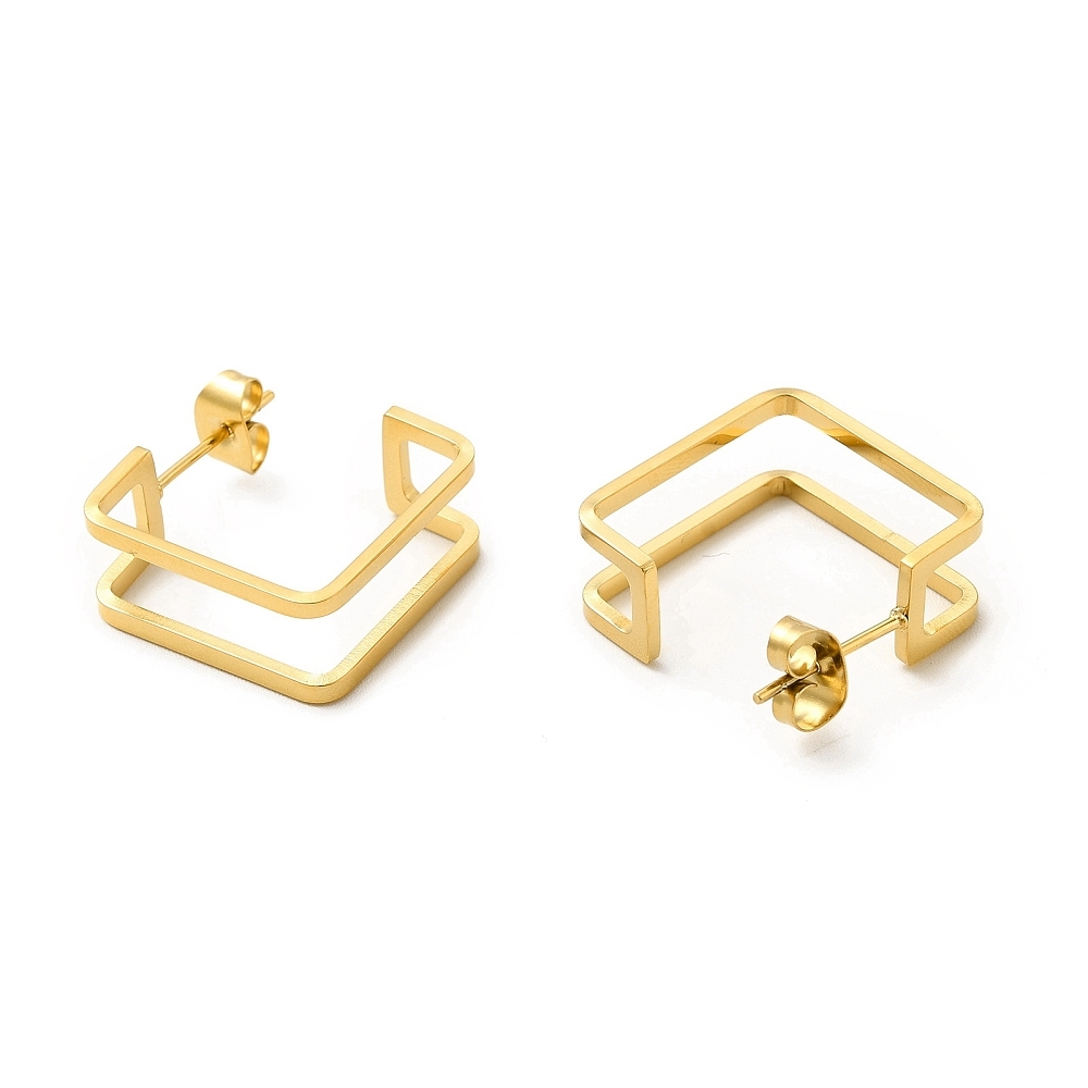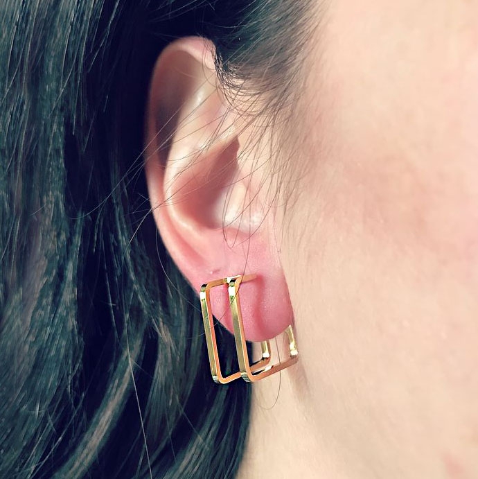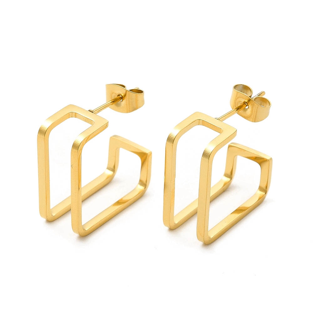 Cerceii asimetrici Umbră Auriu fac parte din Colecția Minimal, sunt o pereche de cercei populari, simpli și de efect, confecționați din oțel inoxidabil electroplacat cu auriu.