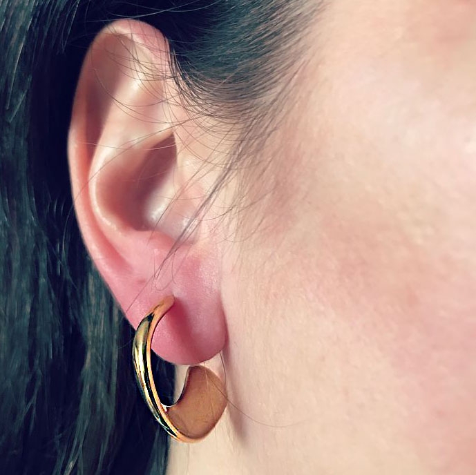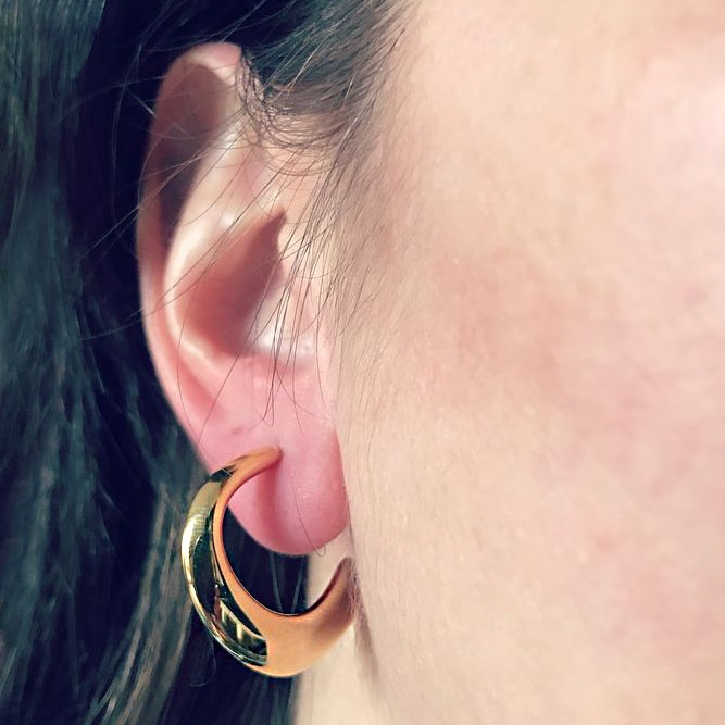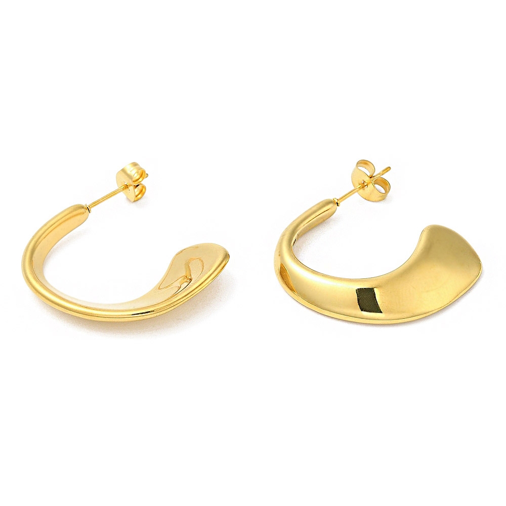 Cerceii Eter Auriu fac parte din Colecția Minimal, sunt o pereche de cercei populari, simpli și de efect, confecționați din oțel inoxidabil, electroplacat cu auriu.