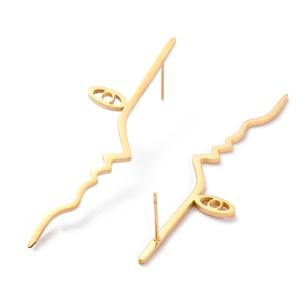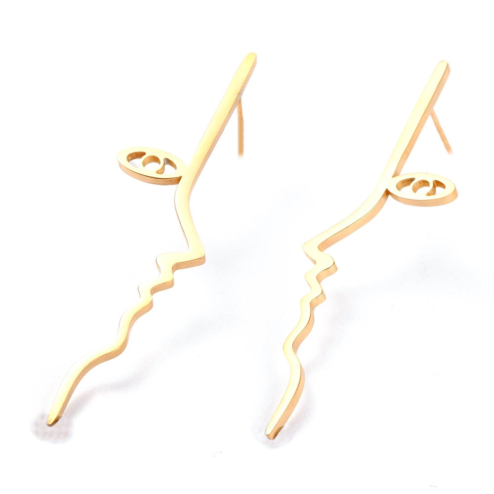 Cerceii asimetrici Face fac parte din Colecția Minimal, sunt o pereche de cercei populari, simpli și de efect, confecționați din oțel inoxidabil electroplacat cu auriu.