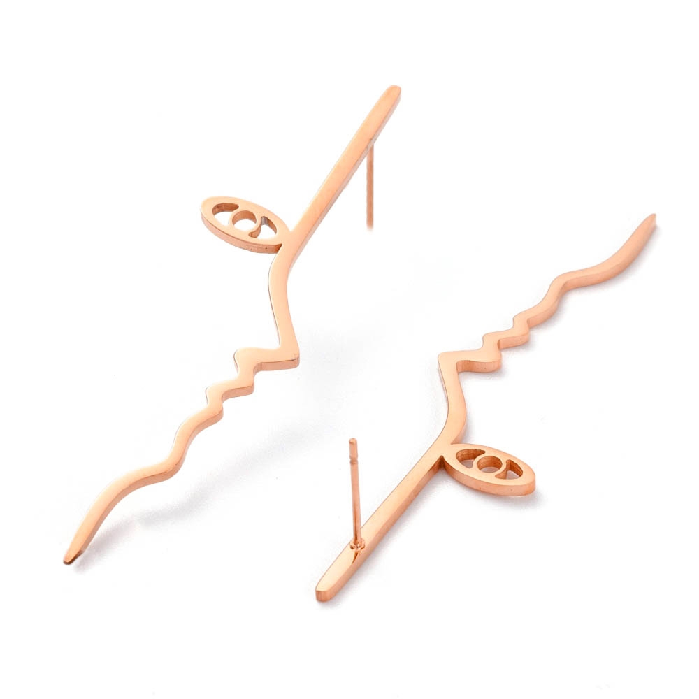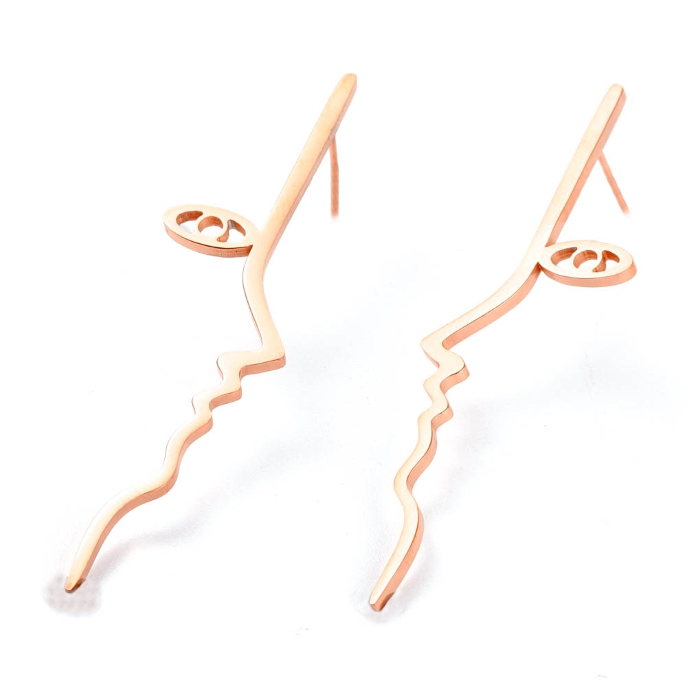 Cerceii asimetrici Face fac parte din Colecția Minimal, sunt o pereche de cercei populari, simpli și de efect, confecționați din oțel inoxidabil electroplacat cu auriu roze.
