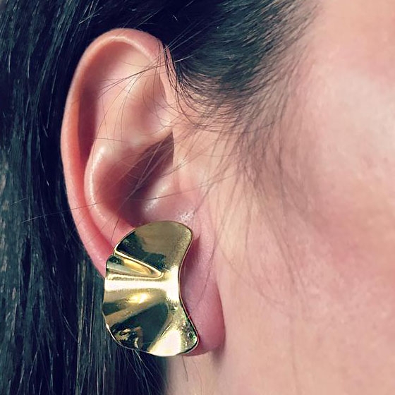 Cerceii Val Auriu fac parte din Colecția Minimal, sunt o pereche de cercei populari, simpli și de efect, confecționați din oțel inoxidabil electroplacat cu auriu.