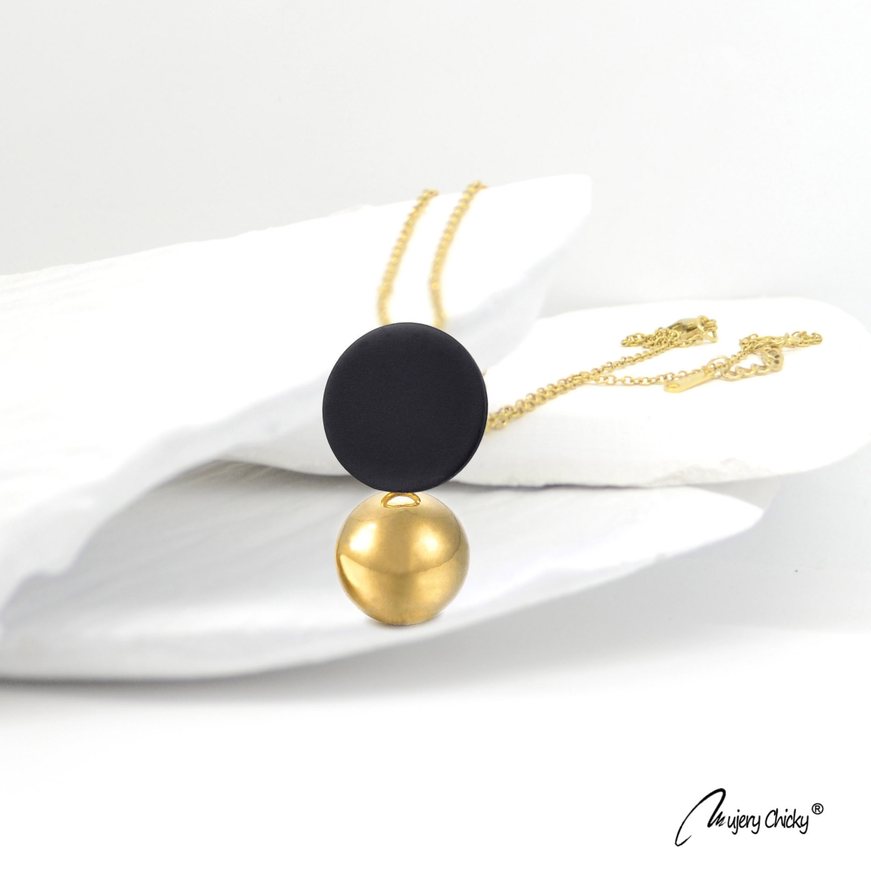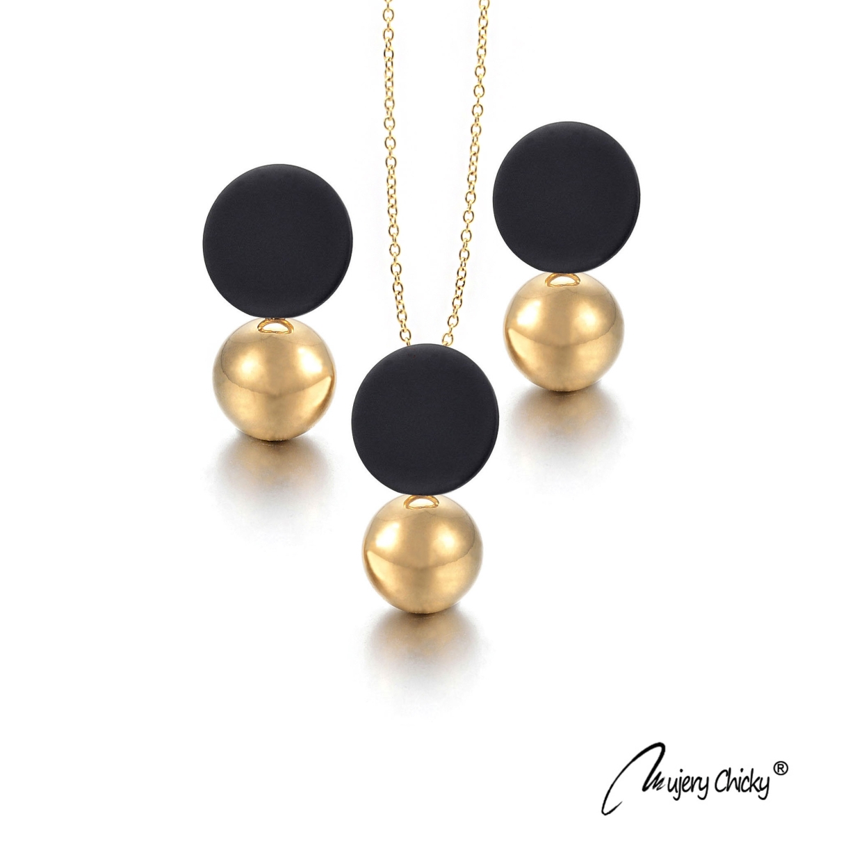 Cerceii și colierul sunt confecționate din oțel inoxidabil, electroplacat cu auriu, material hipoalergenic.