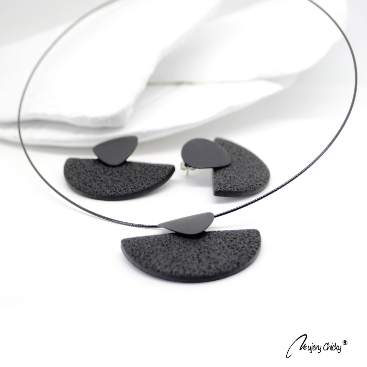 Setul Daruka Black face parte din Colecția Underground, este confecționat manual din lut polimeric texturat cu aspect de piele, montat pe bază metalică din oțel inoxidabil, electroplacat cu auriu.