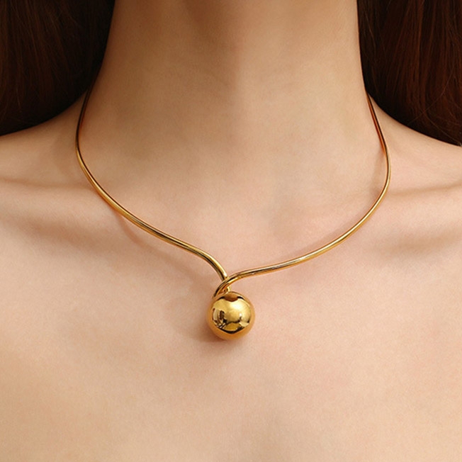 Colierul Ball rigid confectionat din singură piesă din oțel inoxidabil electroplacat cu auriu.