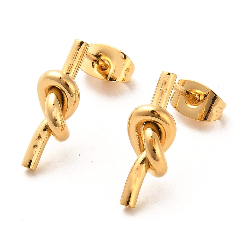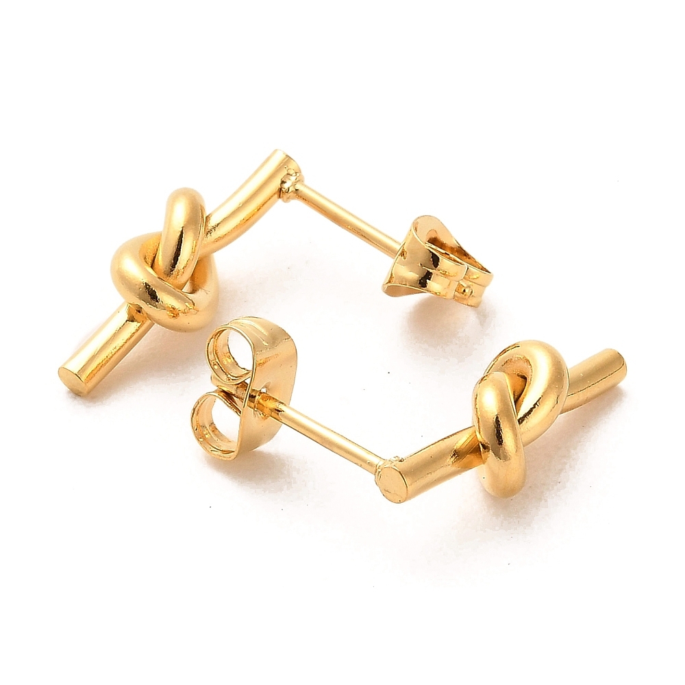 Cerceii Knot Auriu fac parte din Colecția Minimal, sunt o pereche de cercei populari, simpli și de efect, confecționați din oțel inoxidabil, electroplacat cu auriu.