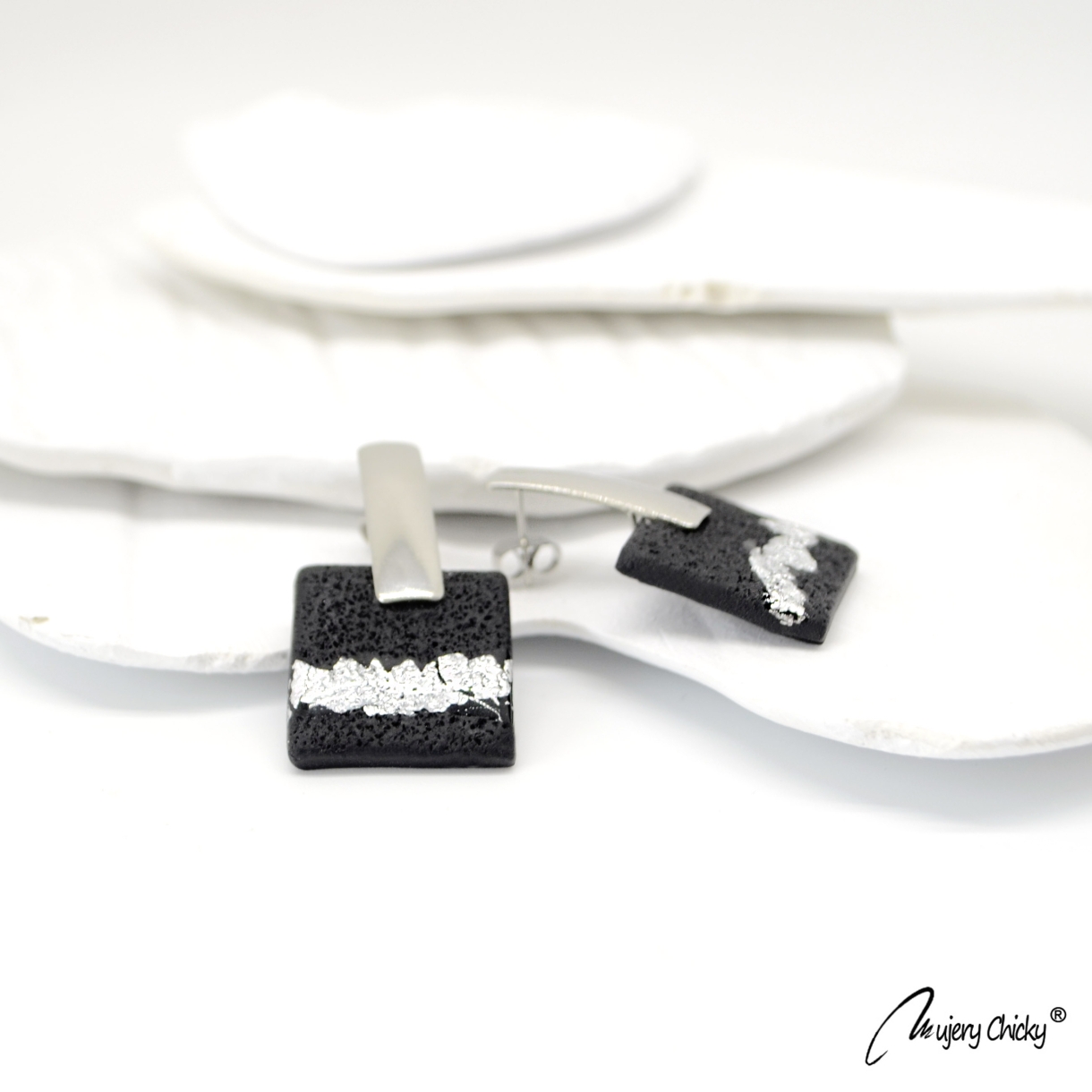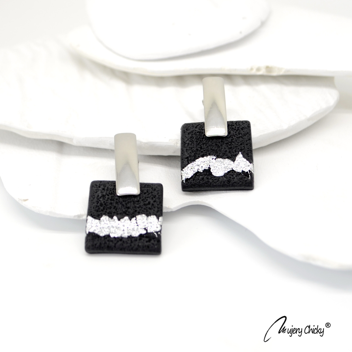 Cerceii Burgos Argintiu fac parte din Colecția Underground, sunt lucrați manual din lut polimeric texturat cu aspect de piele, placat cu foiță de argint sigilată cu rășină UV, montură cu oțel inoxidabil.