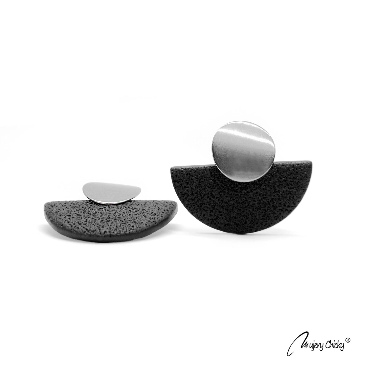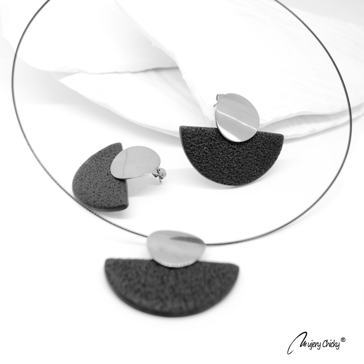 Setul Daruka Argintiu face parte din Colecția Underground, este confecționat manual din lut polimeric texturat cu aspect de piele, montat pe bază metalică din oțel inoxidabil.