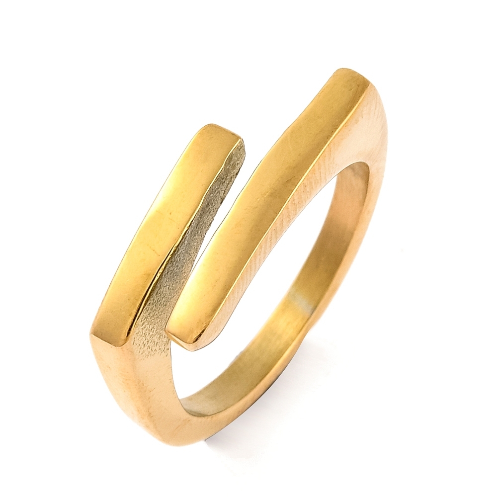 Inel Paralel Auriu este o piesă fixă, realizată dintr-o singură bucată din inox electroplacat cu auriu.
