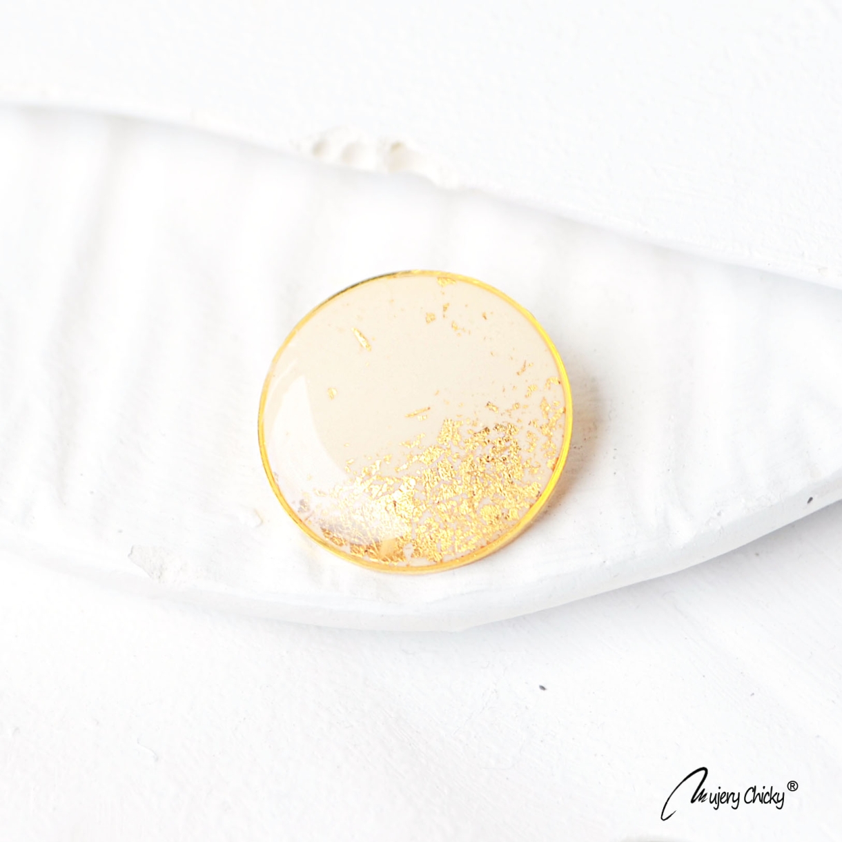 Brosa Siaja Rotund Crem Auriu